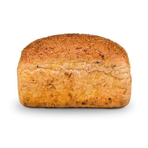 Kto raz zasmakuje w naszym chlebie kukurydzianym, z pewnością będzie do niego powracał. Wyrazisty, wilgotny wypiek z mąki kukurydzianej, o lekko słodkim smaku i pięknej żółtej barwie. Mąka kukurydziana zawiera wiele substancji odżywczych, takich jak: białko oraz błonnik, który znacznie ułatwia trawienie. W składzie znaleźć można również witaminy A, E oraz B, a także magnez fosfor, potas i selen. Mąka jaglana zaliczana jest do mąk bezglutenowych, jednakże w tym wypieku występuje dodatek glutenu pszennego.