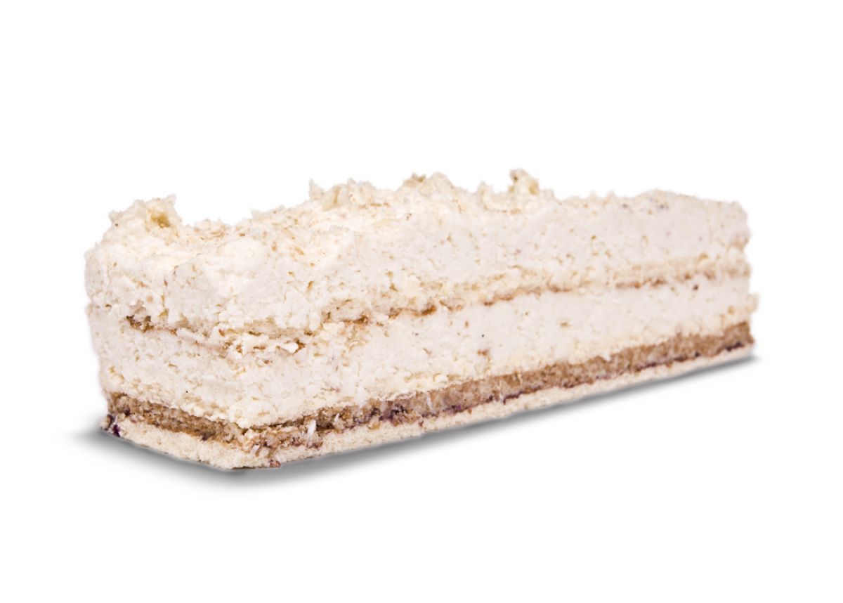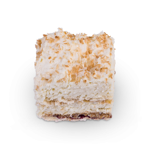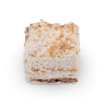 - Skład:ciasto biszkoptowe, krem kokosowy, bita śmietana, prażone wiórki kokosowe