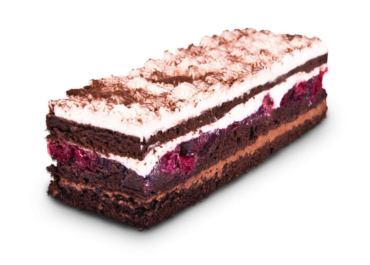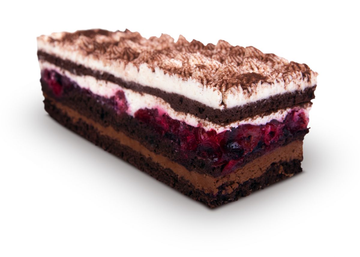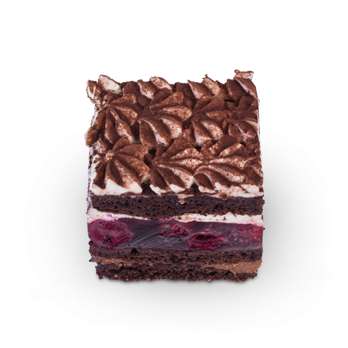 - Skład:ciasto czekoladowe krem czekoladowy, galaretka wiśniowa z wiśniami i bitą śmietaną