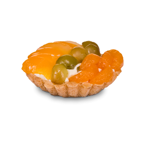 - Skład:krucha babeczka, śmietana, owoce zażelowane