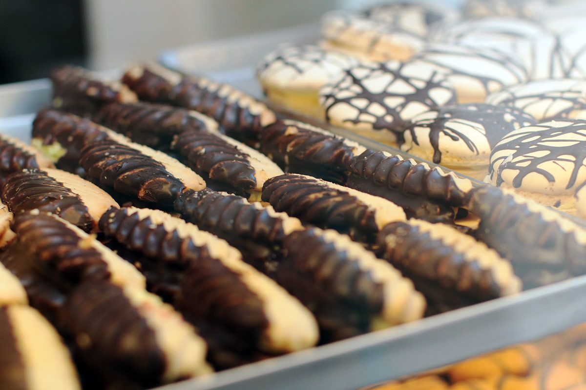 Choć nasze muszelki nie skrywają drogocennych pereł, to ich wnętrze jest równie piękne, bogate, a przede wszystkim smaczne! Czym jest przepyszna muszelka wypiekana w Piekarni Kajmak? To dwa kruche ciasteczka, połączone marmoladą owocową, które zostały delikatnie zanurzone w wybornej czekoladzie. Słodka przekąska na co dzień, która umili Ci drugie śniadanie czy odpoczynek przy poobiedniej filiżance aromatycznej kawy lub herbaty.