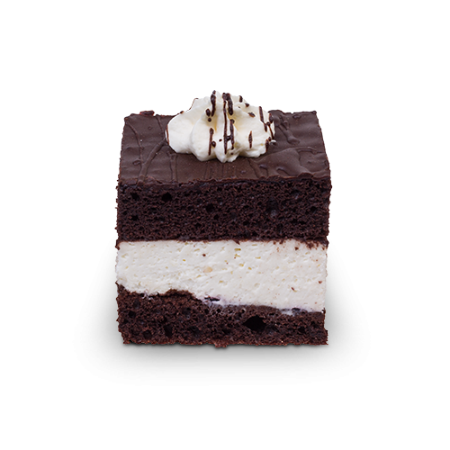 - Skład:ciasto czekoladowe, bita śmietana, polewa czekoladowa